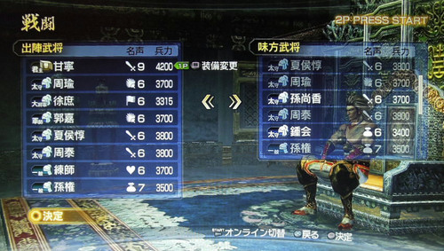 ラストバトルのスタメンです。…そういや せっかく大将軍にした徐庶さん一度も操作してねーやと思いつつ。