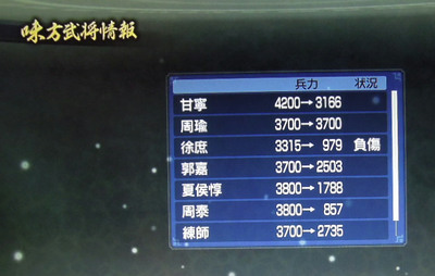 というわけで、「大丈夫!! 死なねぇ死なねぇ!」と、董卓国とのリベンジ戦に怪我中の徐庶さんを無理やりスタメンにねじ込む鬼君主・甘寧なのでした。
