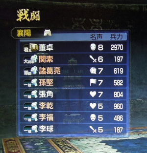 もう敵は董卓国一国なので、徹底的に君主(董卓)が居る地域を狙って攻め込みます。(防衛戦も兼ねられる) うっかり徐庶さんが負傷するなどしつつも、順調に「最終戦」の音楽が流れる最終戦まで辿り着きました。