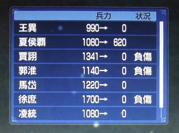 「難しい」でお試しプレーしてたとき、放浪軍メンバーが、徐庶、郭嘉、陸遜、丁奉、練師の5人で「こいつらで戦隊組めるんじゃね?」とか思ってた(笑)