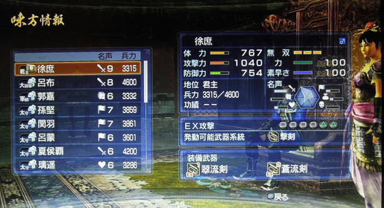 ↑は統一の2~3ターン前のステータスです。武勇9知略1の何という脳筋…
