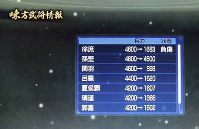 ちなみに呂布も一時撤退してましたが彼はピンピンしてました。さすが呂布さんや。